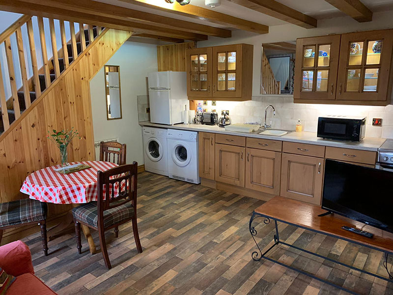 The Wee Nest has a twin/super king bedroom. A bathroom including bath with overhead shower. A well equipped kitchen/dining/sitting room.